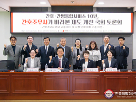 “간호조무사는 보건의료 현장의 소모품입니까? 통합병동에서 우리는 아파도 쉴 수 없습니다. 휴게 시간은 서류상으로만 존재할 뿐, 현장에서는 청소와 미화 업무까지 떠맡으며 간호 인력으로서의 자존감이 무너지고 있습니다.” 대한간호조무사협회(회장 곽지연)와 국민의힘 ‘정책과 미래’ 소속 국회의원(조은희, 조정훈, 이종욱, 조승환, 조지연, 한지아)이 2월 23일 국회의원회관 제8간담회의실에서 공동 개최한 ‘간호·간병통합서비스 10년, 간호조무사가 바라본 제도 개선 국회 토론회’에서 터져 나온 현장의 목소리다. 간호·간병통합서비스 도입 10년을 맞아 열린 이번 토론회는 정책 성과 이면에 가려진 간호조무사의 열악한 근무 실태를 조명하고, 현장 중심의 배치 기준 마련 및 제도 개선 방안을 모색하고자 마련됐다. 특히 이날 발표된 ‘병동 간호조무사 근무 현황 실태조사’ 결과는 현장의 위기를 여실히 보여주었다. 당일 토론회에서 조정훈 의원은 “간호·간병통합서비스는 사람의 손길로 유지되며 그 핵심이 바로 간호조무사”라며, “10년 동안 헌신해 온 여러분의 노고가 헛되지 않도록 법과 제도를 탄탄히 다지겠다”고 격려했다. 이어 한지아 의원은 “제도의 핵심 주체인 간호조무사들의 과중