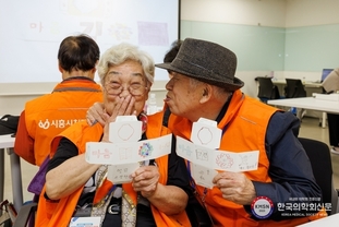 l 올해로 11년째 인지장애 어르신 및 가족들을 위한 일상예찬 캠페인 l 인천·경기로 확대한 예술치유 프로그램, 인지장애 어르신과 가족 함께 참여 대한치매학회(이사장 최성혜)와 국립현대미술관(관장 김성희)은 10월 21일(화) 국립현대미술관 서울에서‘2025 일상예찬: 함께 만드는 미술관’을 개막했다. 올해로 11년째를 맞은 이 프로그램은 인지장애 어르신과 가족이 미술 관람과 표현 활동 등 예술을 통해 감각을 깨우고 일상의 즐거움을 되새기는 문화예술 프로그램으로, 오는 10월 30일(목)까지 총 6회(10월 21·22·24·28·29·30일)에 걸쳐 진행된다. ’일상예찬: 함께 만드는 미술관’은 현대미술 감상에 그치지 않고, 작품을 기반으로 한 표현·신체 활동을 결합해 인지·정서·신체 기능을 함께 자극하는 다감각 예술치유 프로그램이다. 올해는 국립현대미술관의 소장품 전시 ‘한국현대미술 하이라이트’를 중심으로, 참가자들은 주요 작품 감상과 교구를 활용한 표현 활동을 통해 기억과 감정을 되살린다. 또한 미술관 안팎을 거닐며 미술관 건축과 인왕산이 어우러진 풍경 속에서 자연의 빛과 공기를 느끼는 ‘예술 산책’이 이어진다. 참가자들은 미술관의 식물과 자연을 관찰하며